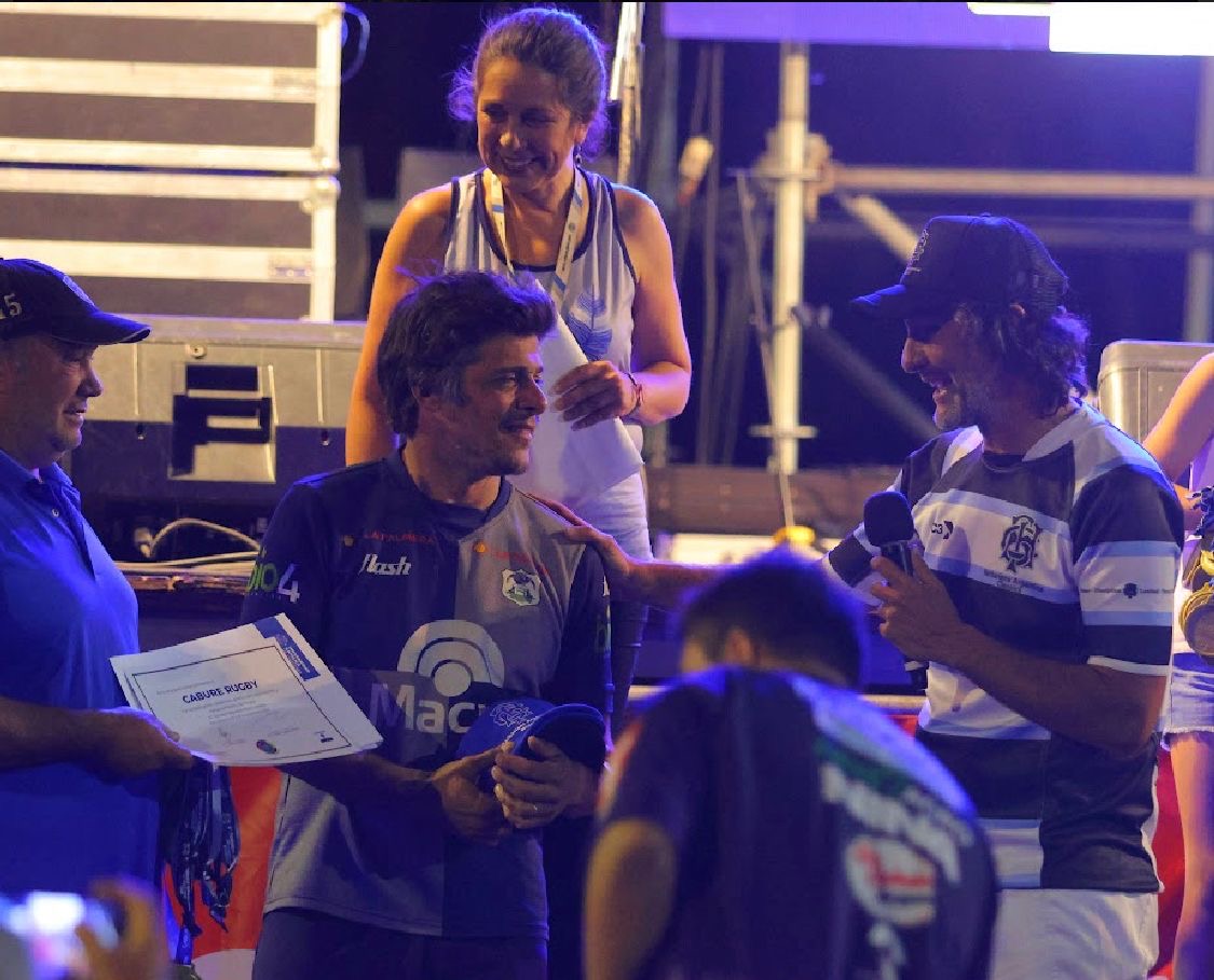 Los mismos se entregaron a Sebastian Perasso, Salvador Mosso para Cabure Rugby, Ignacio Busso para Toros XV y Alberto Mugno para Dinos XV. Los mismos se entregaron en el Torneo Nacional/Sudamericano de Rugby Mixed celebrado los días 24 al 26 de Noviembre del corriente en la Ciudad de Río Cuarto Provincia de Córdoba. En la foto estamos César Lopez Martí y Patricio Centeno integrantes de la CD de Córdoba.