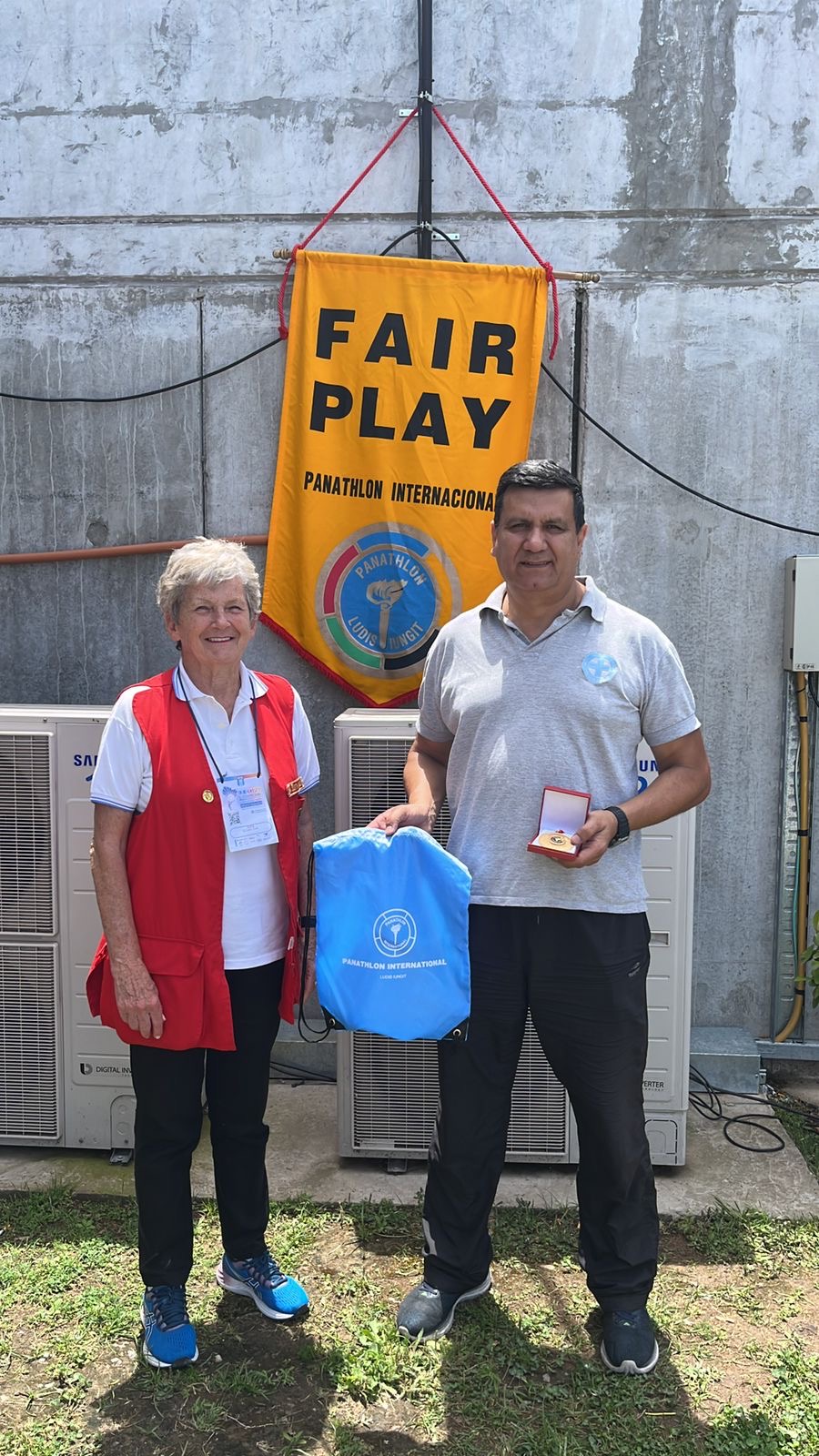 Eva Szabo Presidente del Panathlon Club Buenos Aires estuvo presente y entregó el Premio fair Play en el campeonato sudamericano de tiro, especialidad pistola grueso calibre, al deportista argentino Daniel Martínez, por su gesto de honestidad deportiva.